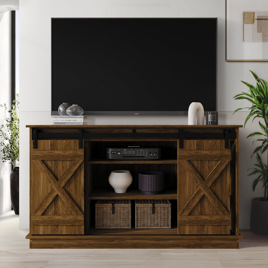 Mainstays Industrial TV Stand for TVs up to 70", Canyon Walnut Finish