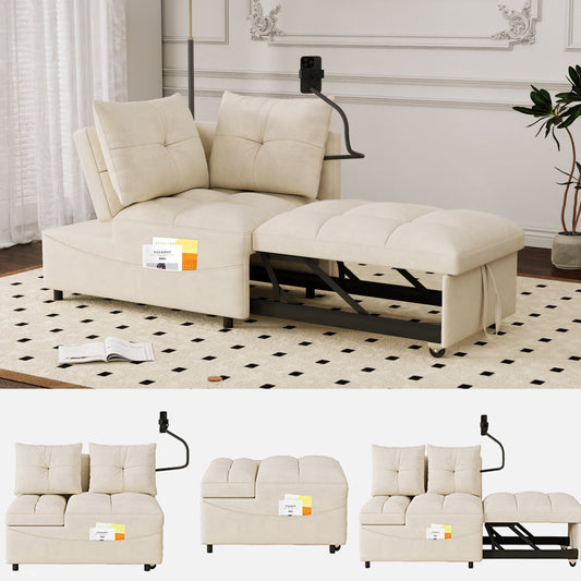 Aukfa Small Sleeper Sofa Bed with USB Charging, 5-in-1 Convertible Velvet Couch with Phone Pocket for Studio Apartment/Dormitory,Black