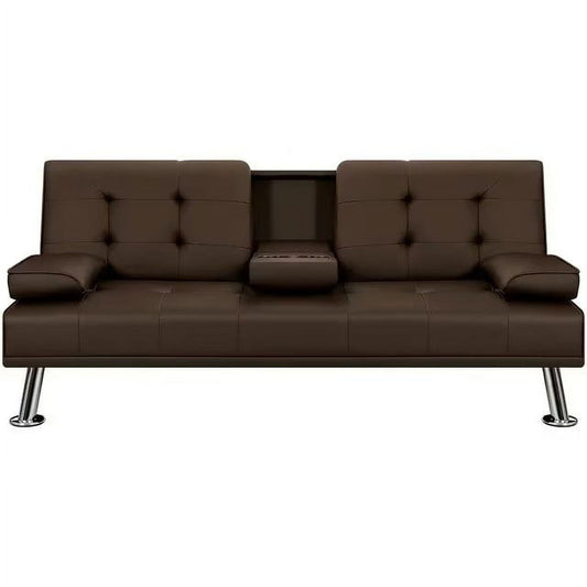 Vineego Modern Faux Leather Couch Convertible Folding Futon Sofa Bed with 2 Cup Holders,Black