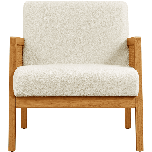 Renwick Fabric Upholstered Accent Chair with Rattan Sides for Living Rooms,Beige