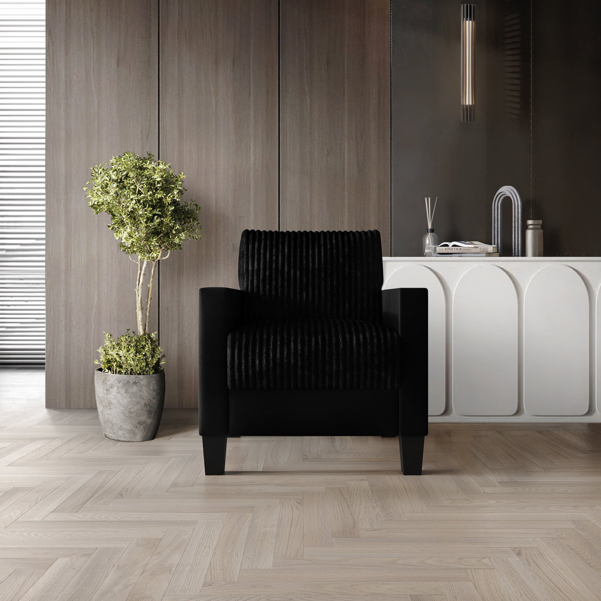 - Equipped with square armrests for modern style and comfortable arm support
